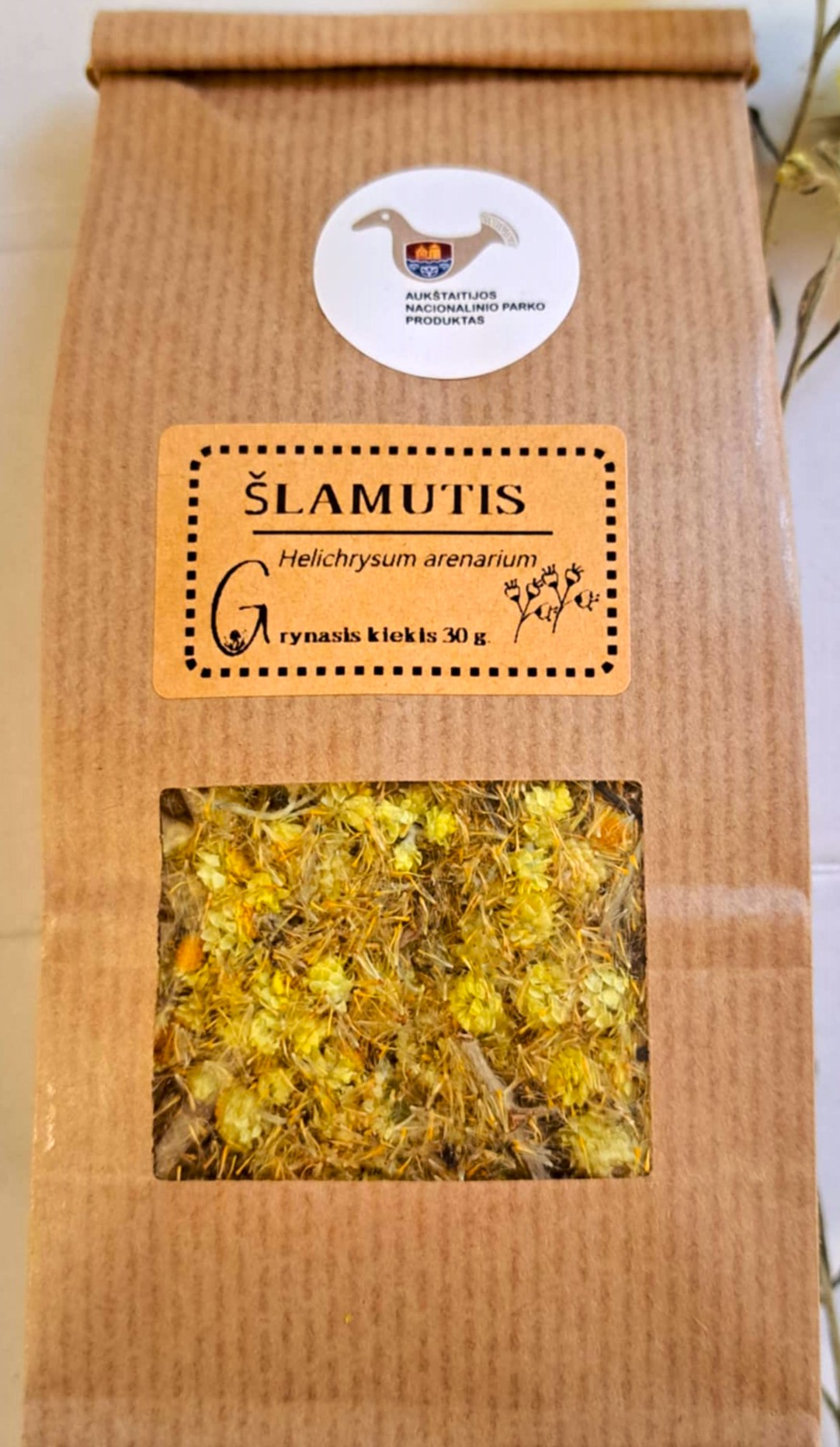 Šlamutis ( Helichrysum arenarium) – tai ryškiai geltonas, saulės šilumą primenantis augalas, nuo seno vertinamas tiek dėl savo grožio, tiek dėl savybių, kurias mėgo žolininkai. Mūsų ūkyje siūlomi laukiniai šlamučiai, renkami švariose pievose ir natūraliuose augimvietėse, kur augalas užauga natūraliai ir sukaupia visas savo savybes.